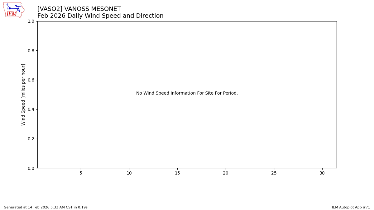 The calendar chart below shows the daily reported climate variables. You can click on a date to display the values for all sites for that day. Time stamps are displayed in the America/Chicago timezone. Wind speeds are in mph and temperatures in Fahrenheit. Values flagged with a (E) are estimated by the IEM.